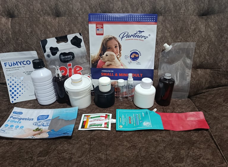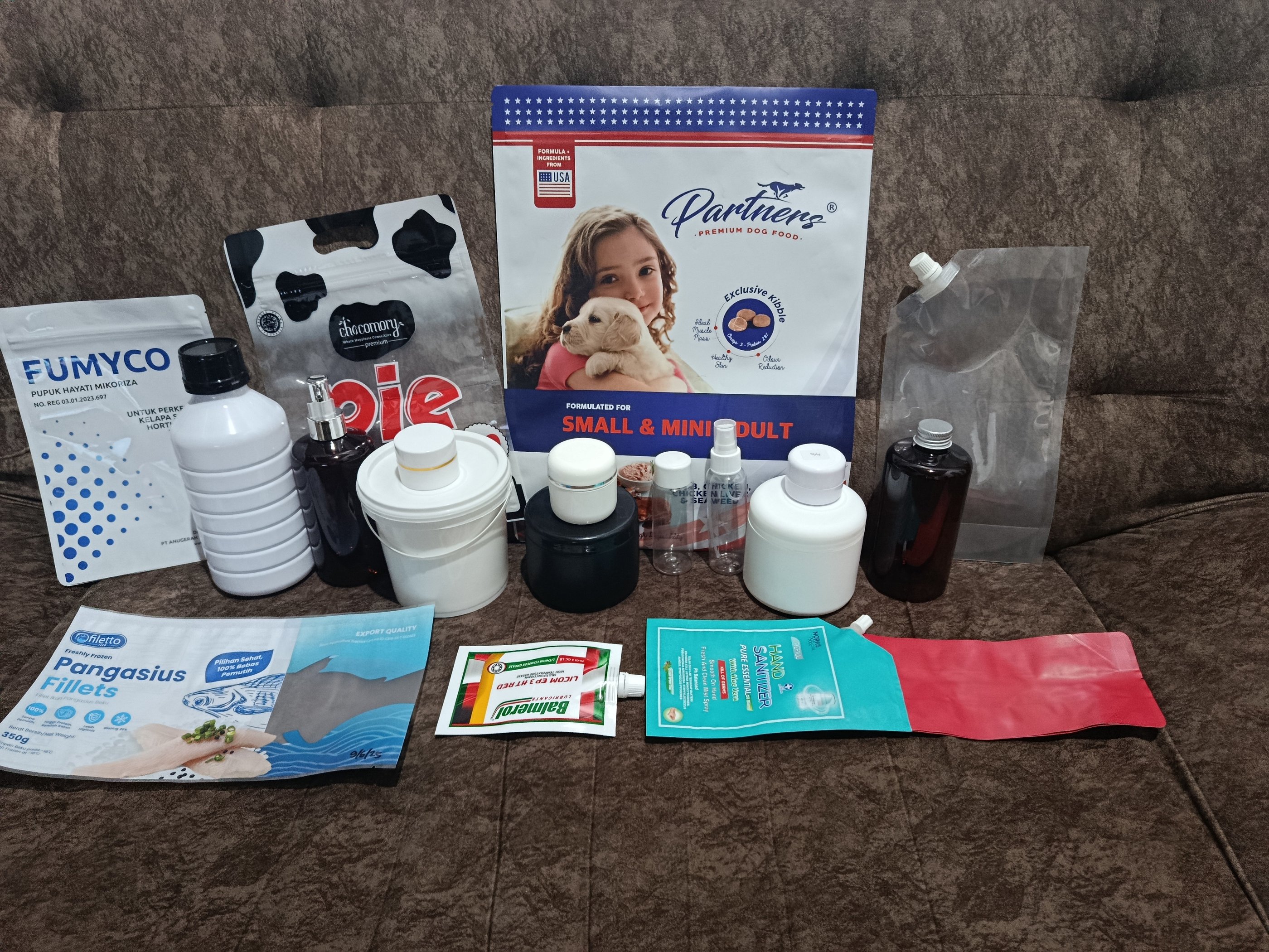 Dari pouch berdiri hingga kemasan botol dan kotak karton, kami melayani kebutuhan kemasan dengan presisi dan detail.